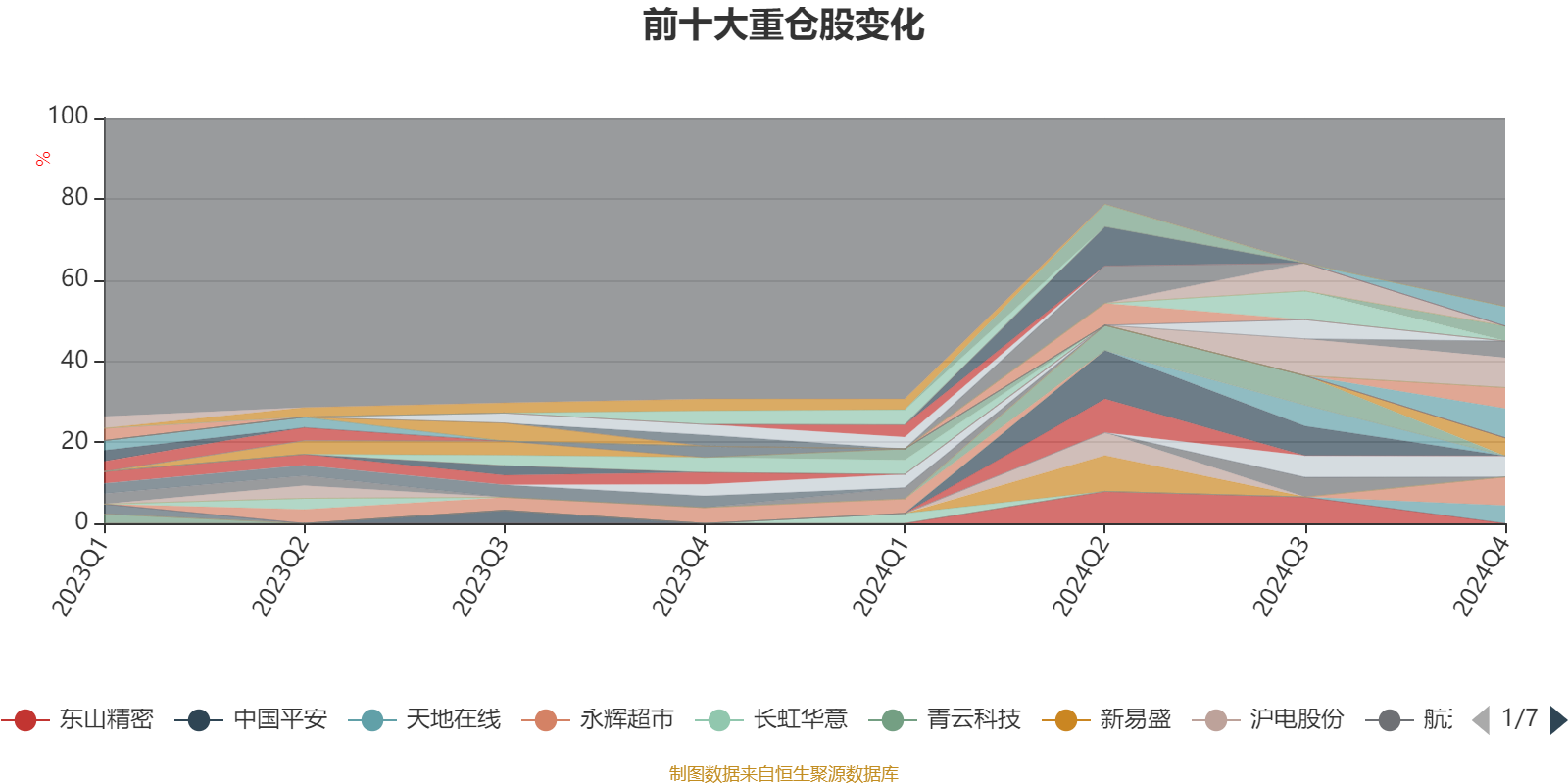 截至2024年四季度末,基金十大重仓股分别是姚记科技、同花顺、永辉超市、中科江南、金杯汽车、实丰文化、冰川网络、天地在线、晶品特装、芯动联科。