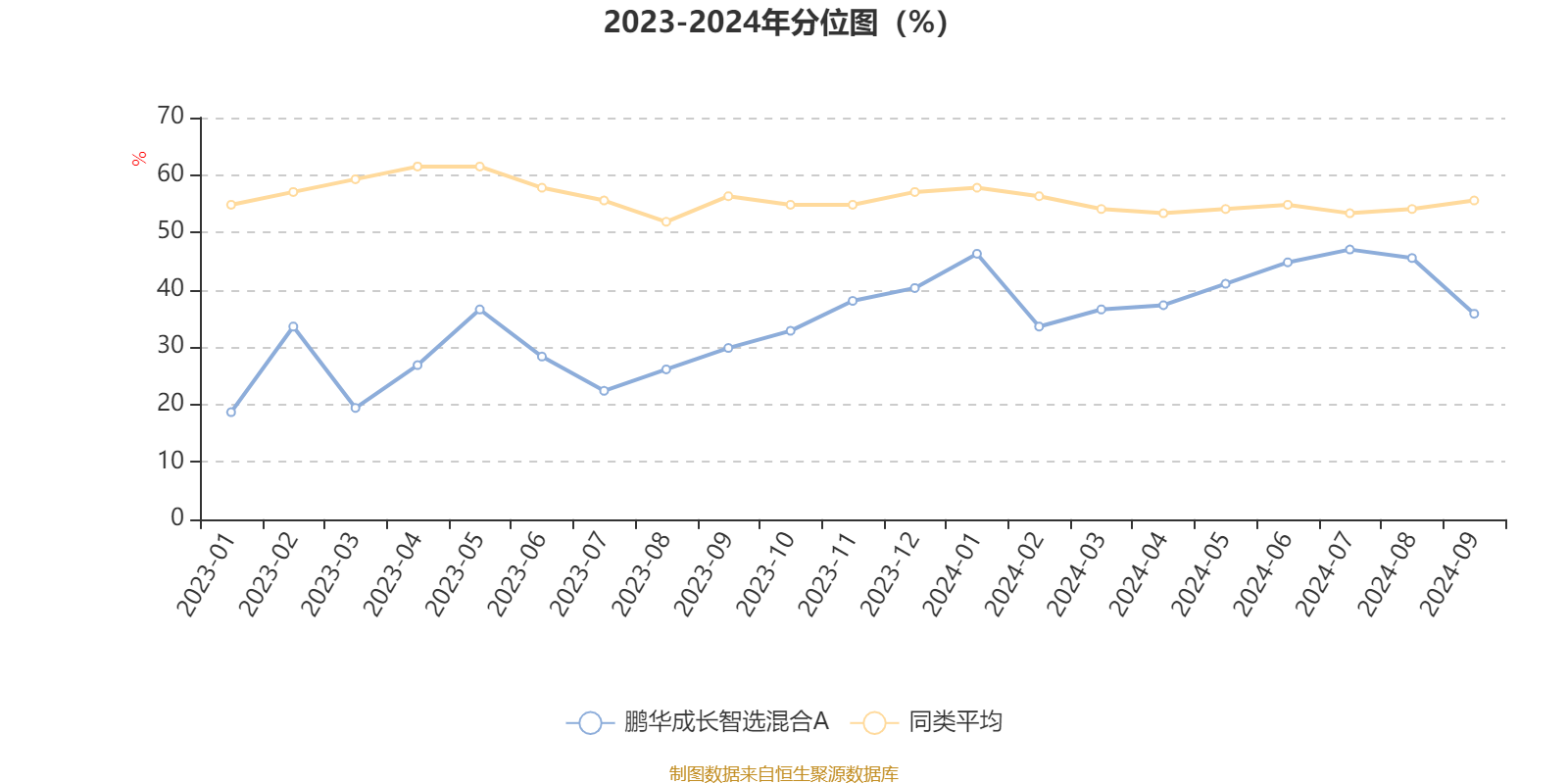 通过所选区间该基金净值增长率分位图,可以观察该基金与同类基金业绩比较情况。图为坐标原点到区间内某时点的净值增长率在同类基金中的分位数。