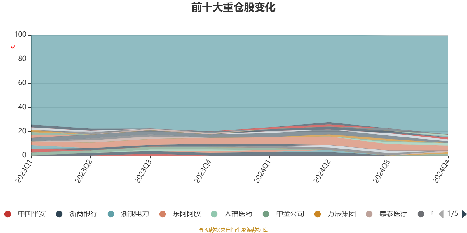 截至2024年四季度末,基金十大重仓股分别是长江电力、东鹏饮料、小米集团-W、中国动力、协创数据、中金公司、万辰集团、惠泰医疗、川投能源、中芯国际。