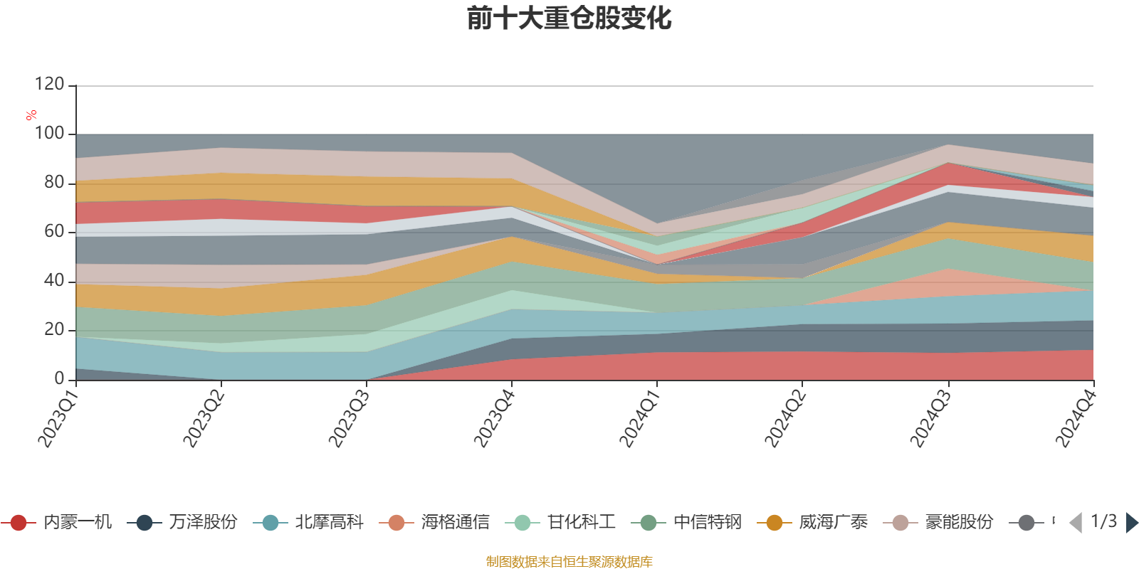 该基金持股集中度较高,近2年前十大重仓股集中度长期超过60%。截至2024年四季度末,基金十大重仓股分别是内蒙一机、北摩高科、万泽股份、中信特钢、康斯特、威海广泰、航天发展、航亚科技、中直股份、中航光电。