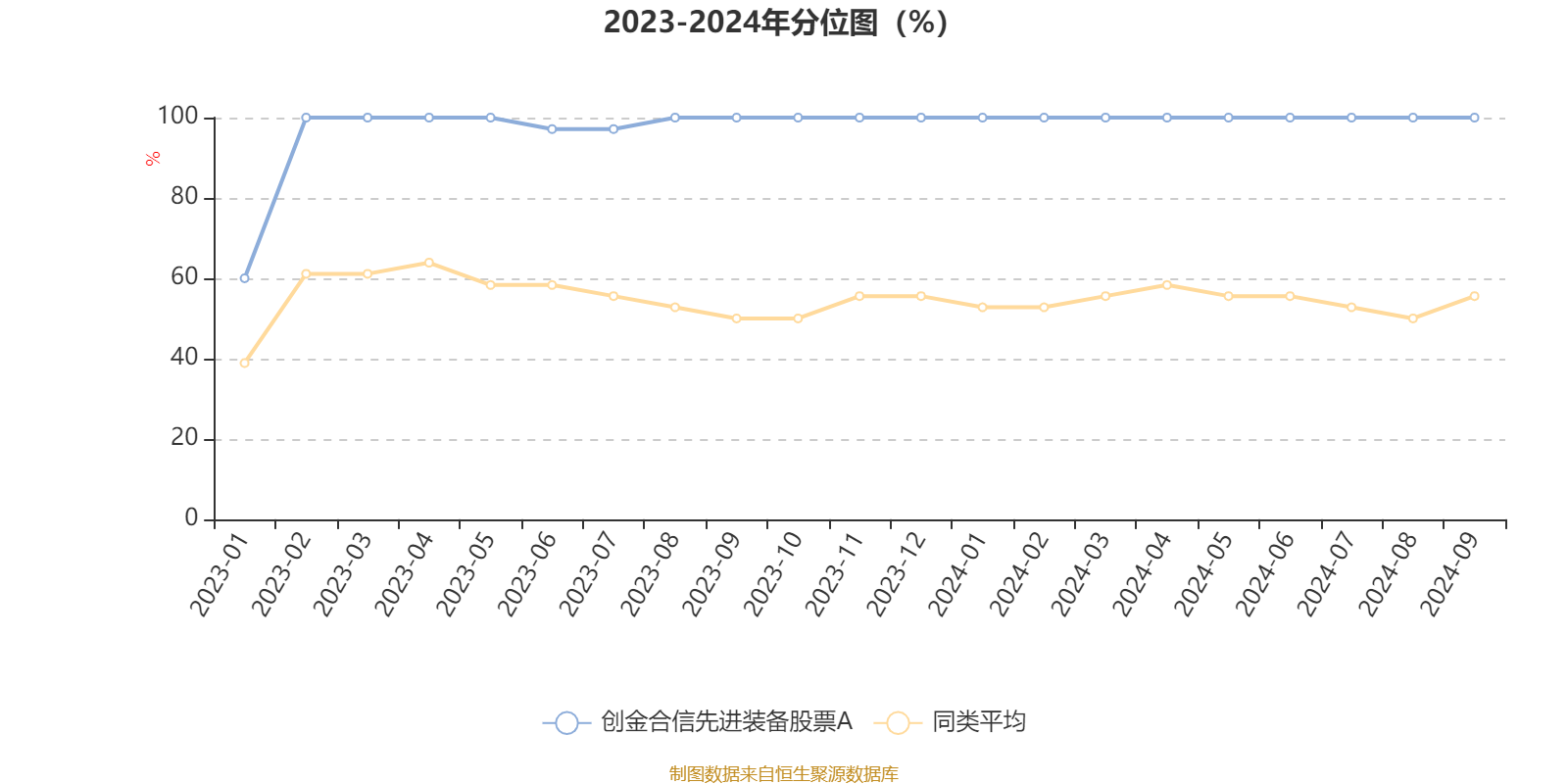 通过所选区间该基金净值增长率分位图,可以观察该基金与同类基金业绩比较情况。图为坐标原点到区间内某时点的净值增长率在同类基金中的分位数。