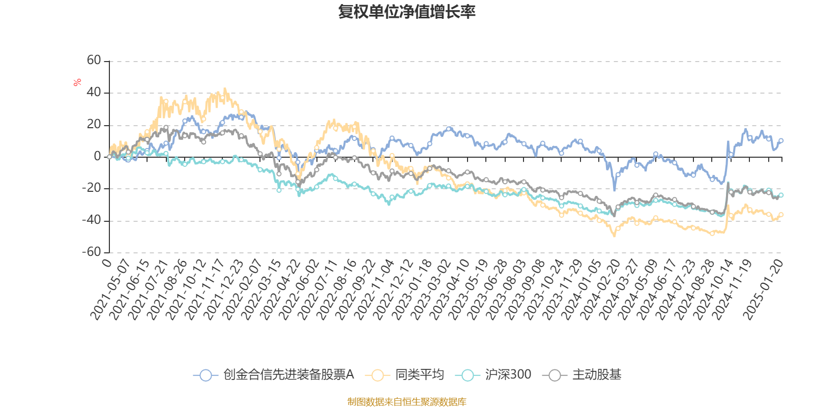 截至1月20日,创金合信先进装备股票A近三个月复权单位净值增长率为7.08%,位于同类可比基金4/42;近半年复权单位净值增长率为22.96%,位于同类可比基金8/42;近一年复权单位净值增长率为13.74%,位于同类可比基金16/41;近三年复权单位净值增长率为-10.49%,位于同类可比基金2/29。