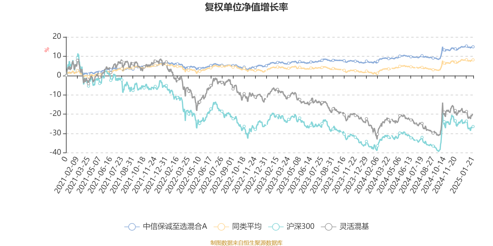 截至1月21日,中信保诚至选混合A近三个月复权单位净值增长率为1.39%,位于同类可比基金68/155;近半年复权单位净值增长率为4.18%,位于同类可比基金53/155;近一年复权单位净值增长率为7.55%,位于同类可比基金63/155;近三年复权单位净值增长率为7.94%,位于同类可比基金37/154。