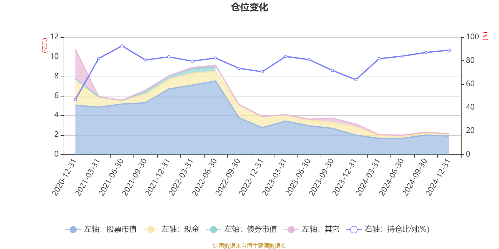 据定期报告数据统计,近三年平均股票仓位为79.05%,同类平均为84.96%。2021年上半年末基金达到92.74%的最高仓位,2020年末最低,为46.89%。