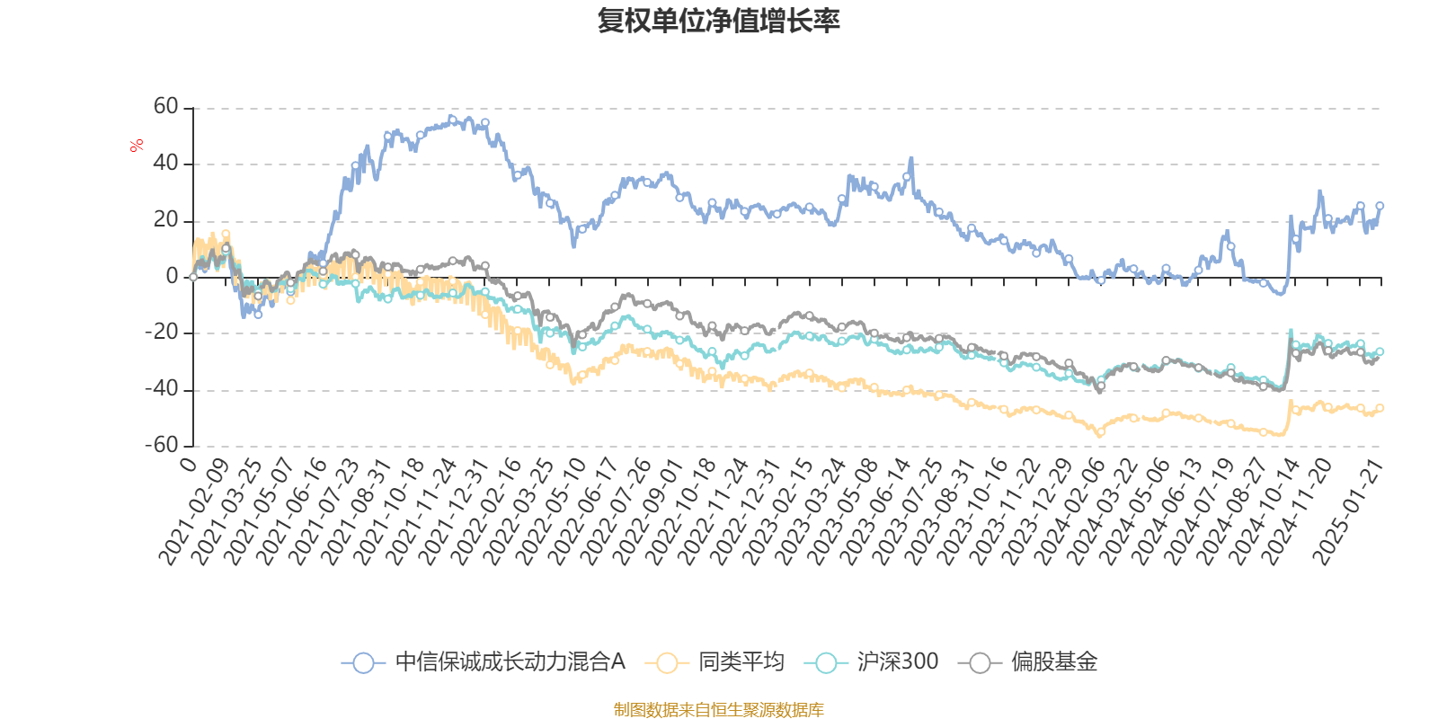 截至1月21日,中信保诚成长动力混合A近三个月复权单位净值增长率为4.87%,位于同类可比基金108/646;近半年复权单位净值增长率为12.99%,位于同类可比基金245/645;近一年复权单位净值增长率为25.14%,位于同类可比基金90/633;近三年复权单位净值增长率为-14.48%,位于同类可比基金95/447。