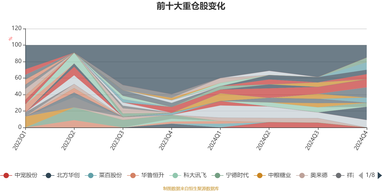 截至2024年四季度末,基金十大重仓股分别是长江电力、国投电力、赛轮轮胎、山东黄金、山金国际、石头科技、立讯精密、漫步者、华中数控、传音控股。