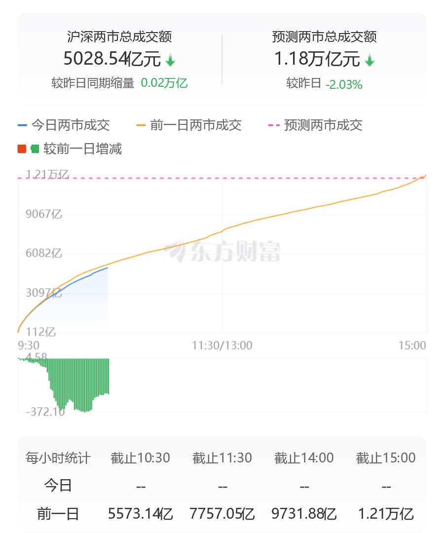 沪深两市成交额突破5000亿 较昨日此时缩量近300亿