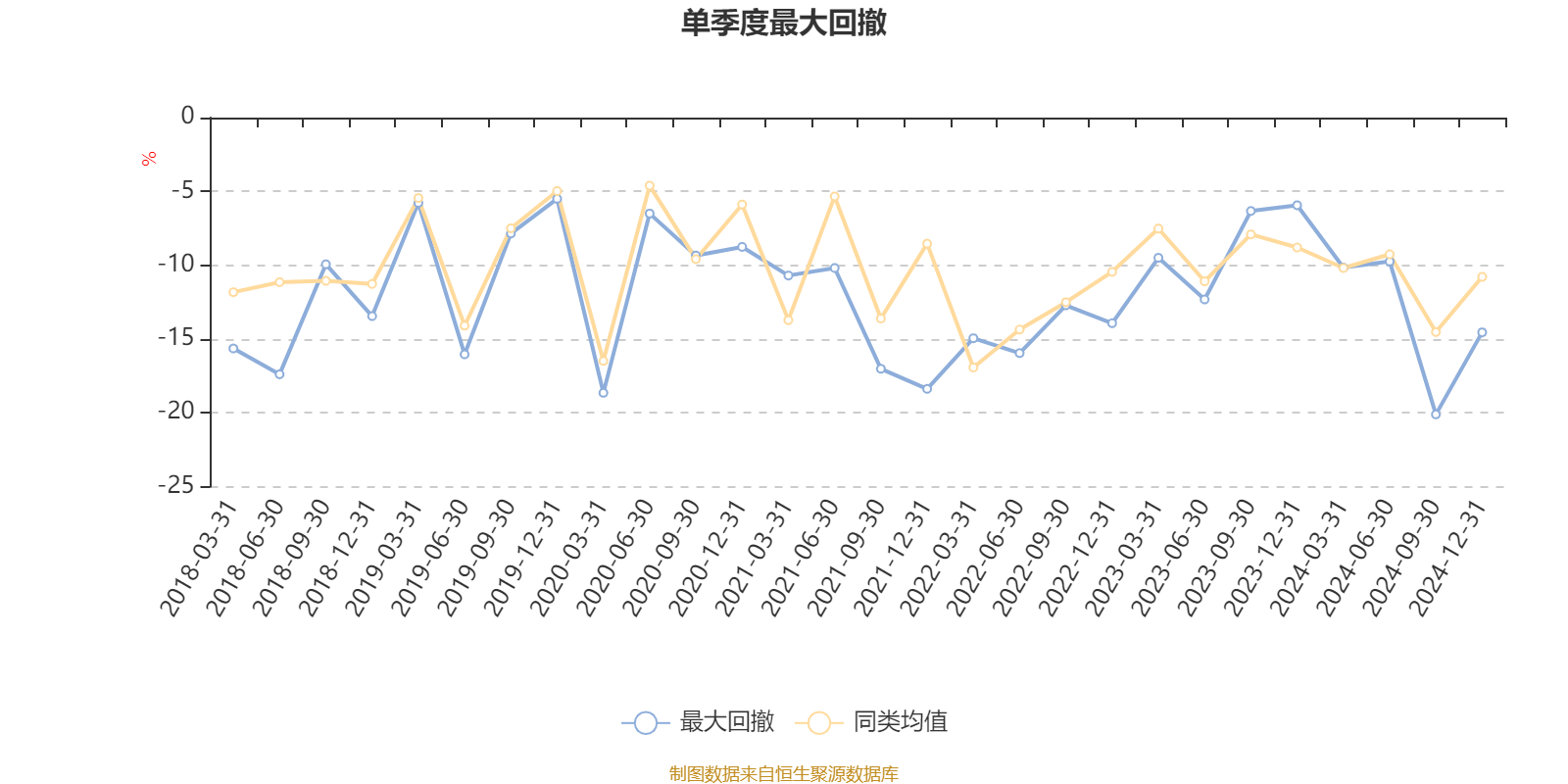 截至1月21日,基金近三年最大回撤为25.19%,同类可比基金排名47/65。其中,单季度最大回撤出现在2024年三季度,为20.11%。