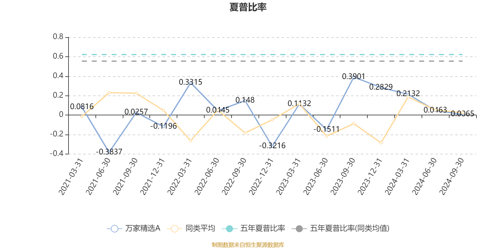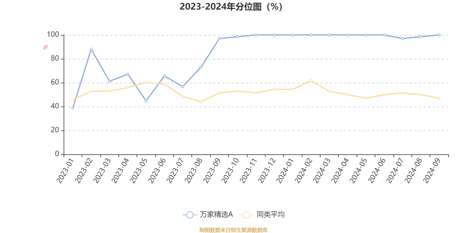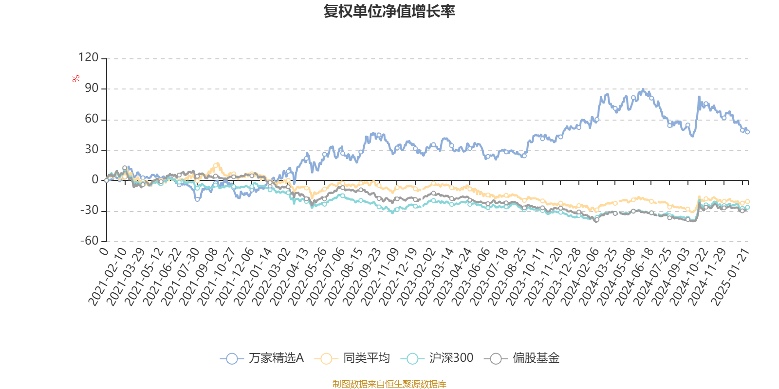 截至1月21日,万家精选A近三个月复权单位净值增长率为-15.14%,位于同类可比基金90/91;近半年复权单位净值增长率为-8.39%,位于同类可比基金86/91;近一年复权单位净值增长率为-4.59%,位于同类可比基金80/88;近三年复权单位净值增长率为44.20%,位于同类可比基金3/66。