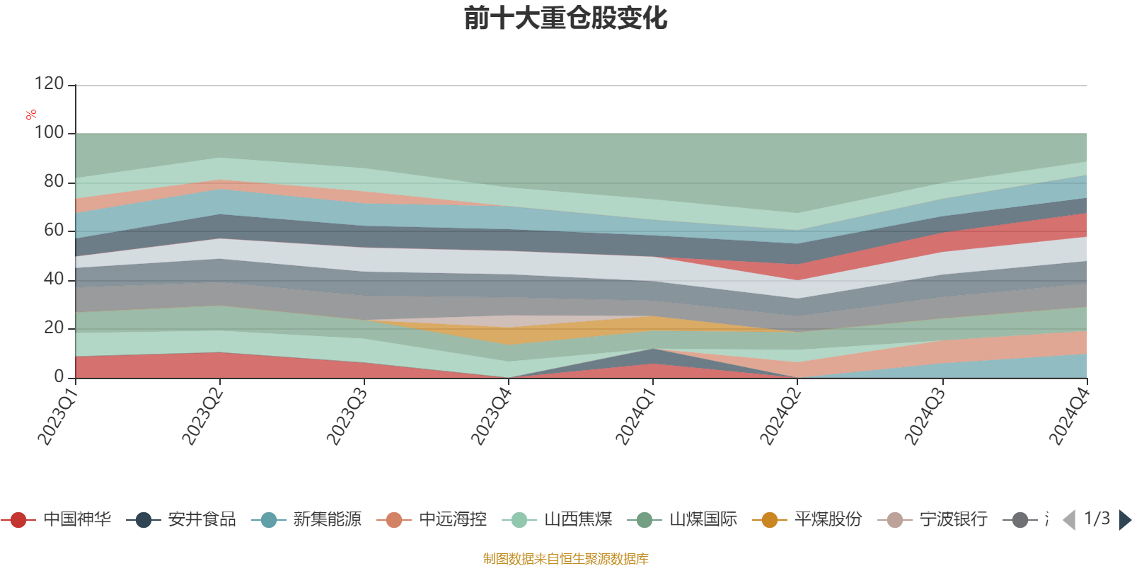 该基金持股集中度较高,且持股标的较为稳定,近2年前十大重仓股集中度长期超过60%。截至2024年四季度末,基金十大重仓股分别是淮北矿业、山煤国际、新集能源、晋控煤业、潞安环能、中远海控、陕西煤业、广汇能源、中煤能源、华阳股份。