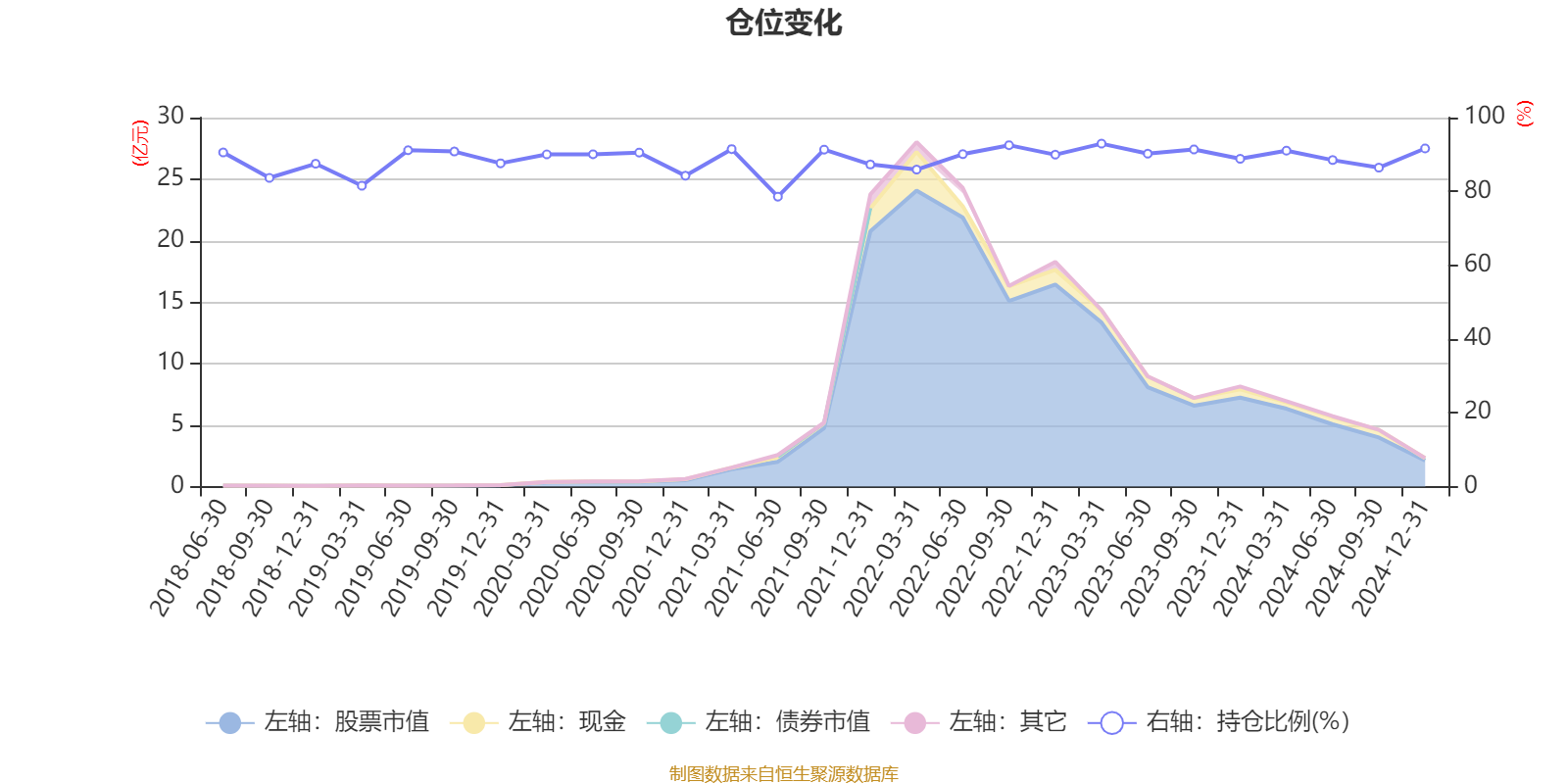 据定期报告数据统计,近三年平均股票仓位为89.95%,同类平均为85.73%。2023年一季度末基金达到92.94%的最高仓位,2021年上半年末最低,为78.57%。