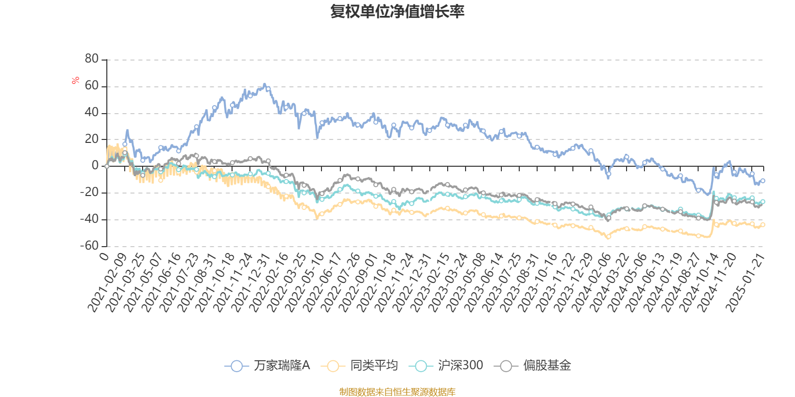 截至1月21日,万家瑞隆A近三个月复权单位净值增长率为-6.94%,位于同类可比基金242/256;近半年复权单位净值增长率为-4.05%,位于同类可比基金248/256;近一年复权单位净值增长率为-11.97%,位于同类可比基金254/256;近三年复权单位净值增长率为-38.08%,位于同类可比基金200/232。