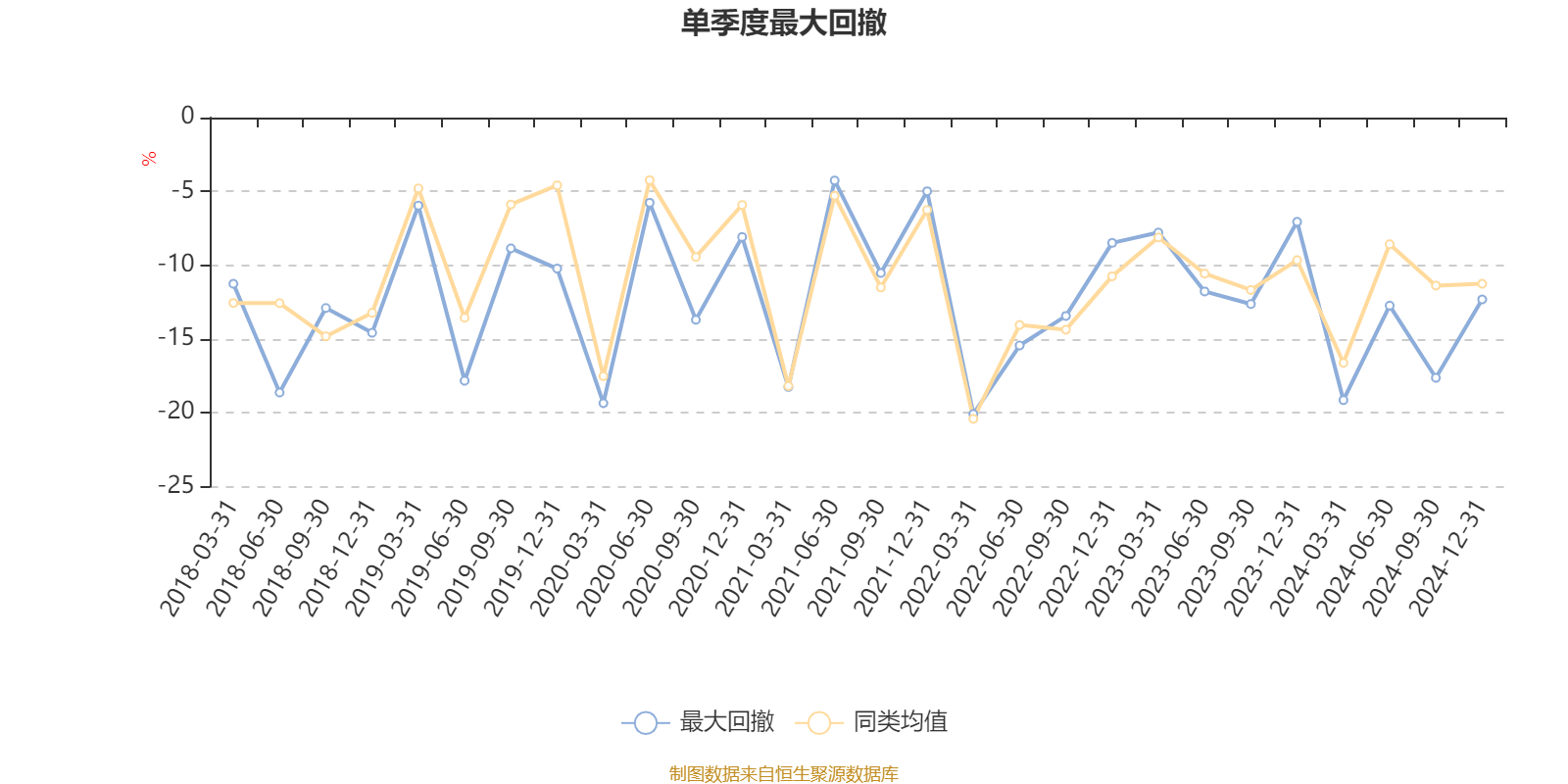 通过所选区间该基金净值增长率分位图,可以观察该基金与同类基金业绩比较情况。图为坐标原点到区间内某时点的净值增长率在同类基金中的分位数。