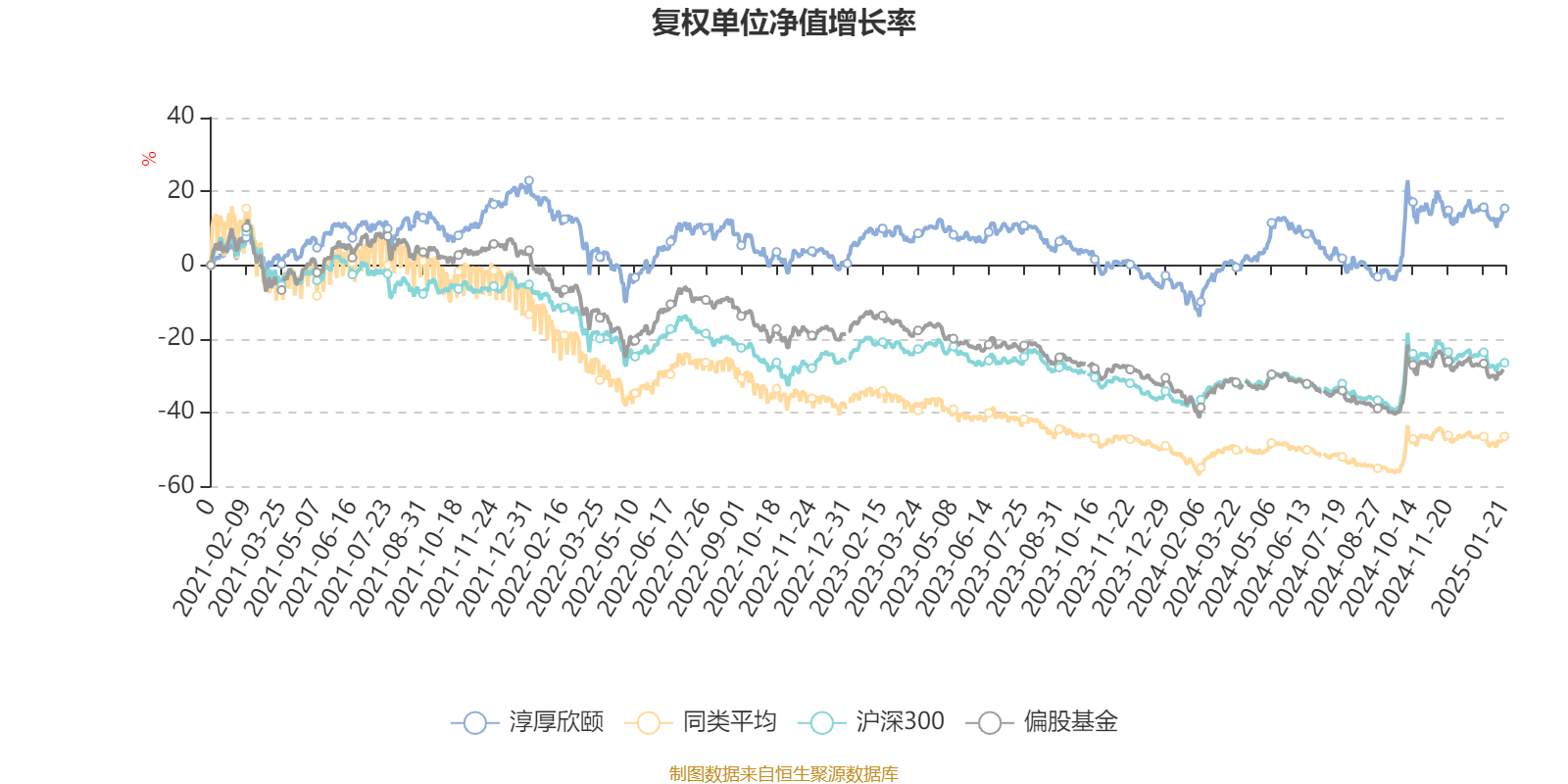 截至1月21日,淳厚欣颐近三个月复权单位净值增长率为0.98%,位于同类可比基金250/646;近半年复权单位净值增长率为13.27%,位于同类可比基金233/645;近一年复权单位净值增长率为25.03%,位于同类可比基金93/633;近三年复权单位净值增长率为-1.71%,位于同类可比基金35/447。