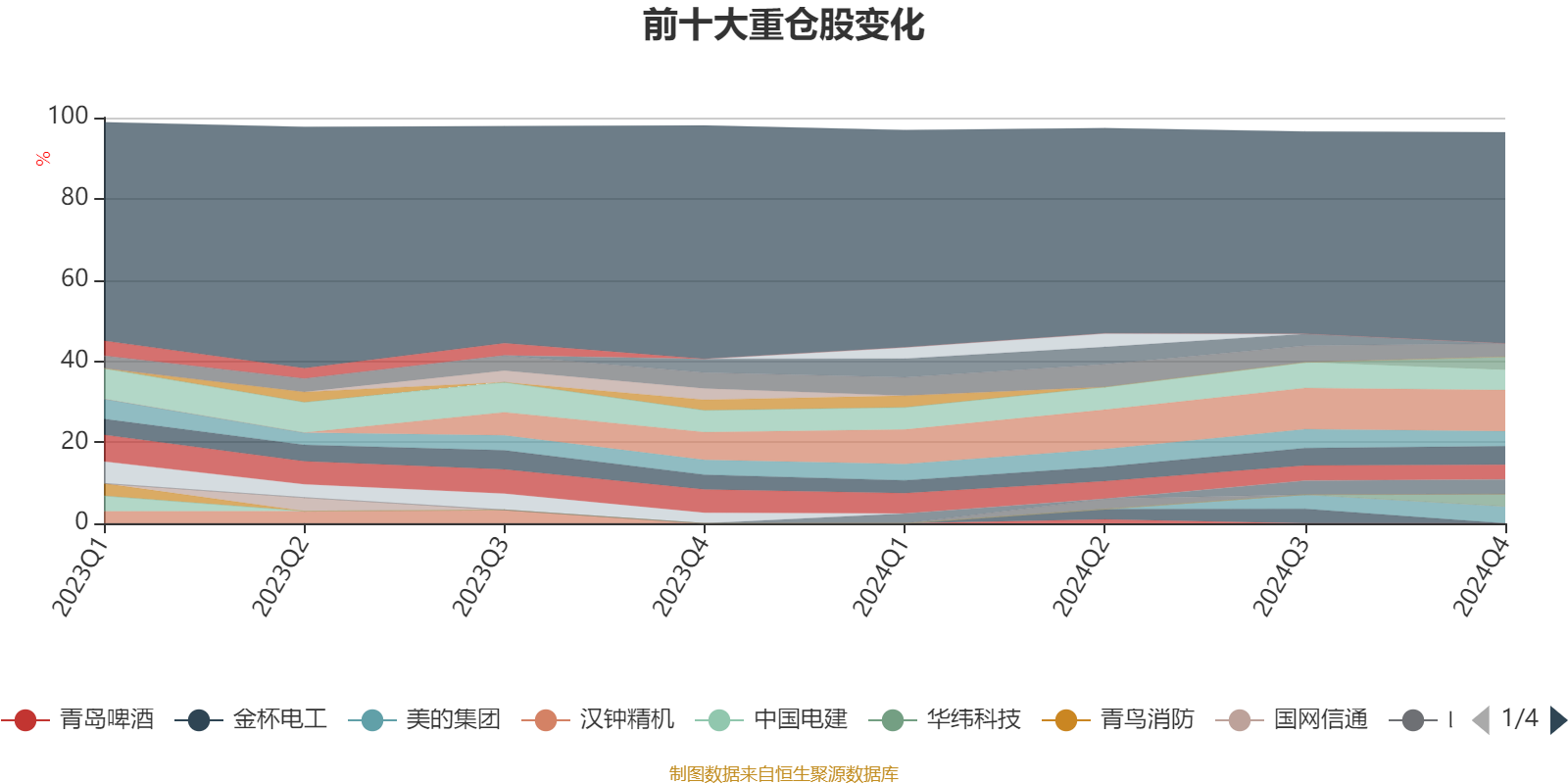 截至2024年四季度末,基金十大重仓股分别是腾讯控股、青岛啤酒股份、宏发股份、美的集团、格力电器、海信家电、五粮液、四方股份、小米集团-W、华纬科技。