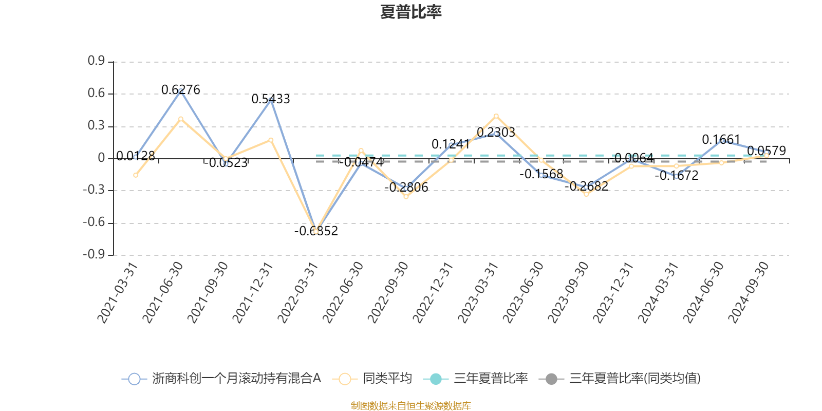 截至9月30日,基金近三年夏普比率为0.0269,位于同类可比基金44/126。