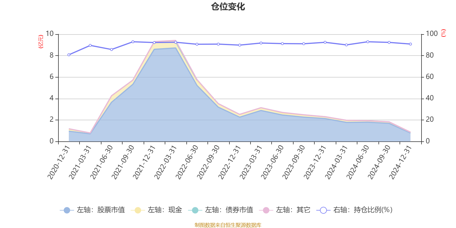 据定期报告数据统计,近三年平均股票仓位为91.37%,同类平均为84.67%。2024年上半年末基金达到92.95%的最高仓位,2020年末最低,为80.81%。