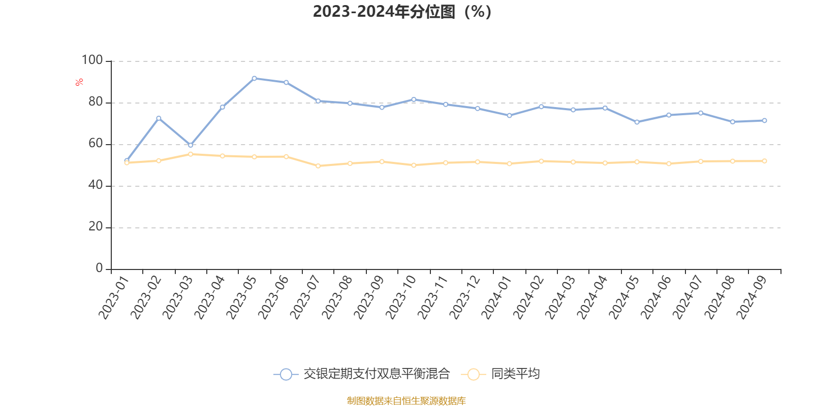 通过所选区间该基金净值增长率分位图,可以观察该基金与同类基金业绩比较情况。图为坐标原点到区间内某时点的净值增长率在同类基金中的分位数。