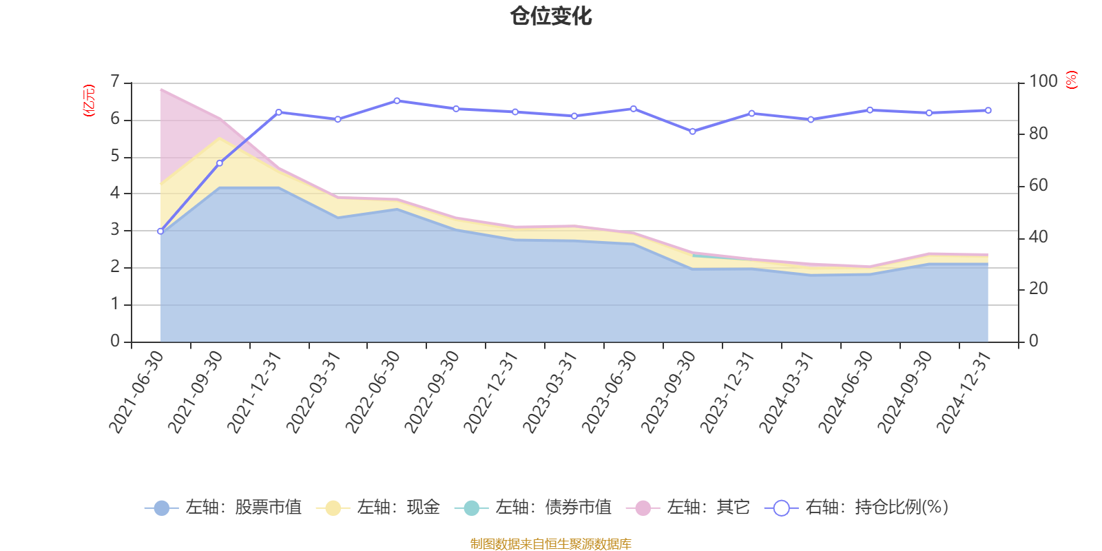 据定期报告数据统计,近三年平均股票仓位为88.07%,同类平均为84.96%。2022年上半年末基金达到93.01%的最高仓位,2021年上半年末最低,为42.7%。