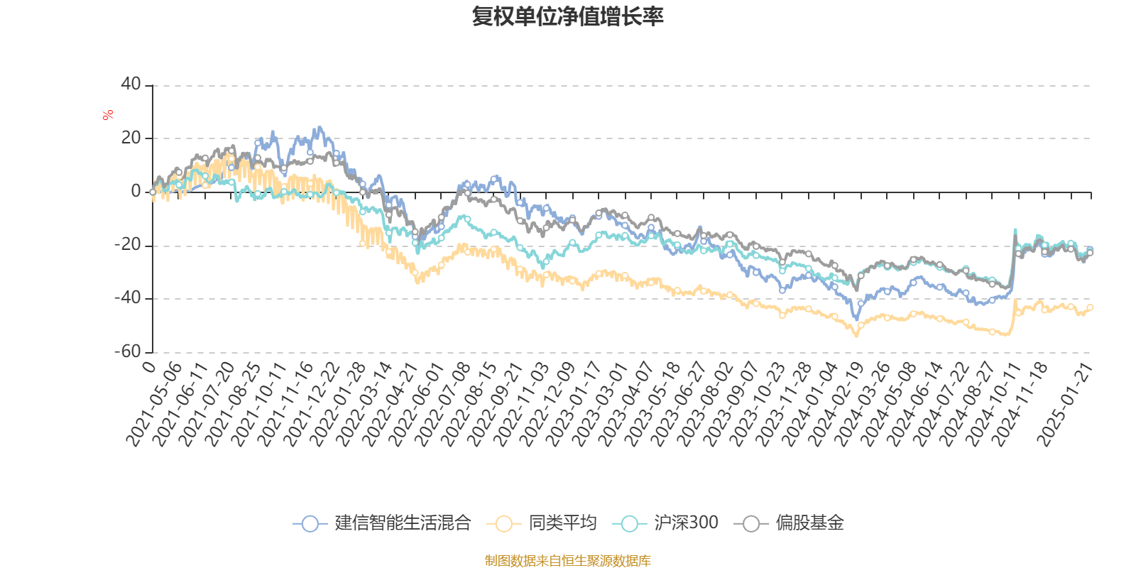 截至1月21日,建信智能生活混合近三个月复权单位净值增长率为1.70%,位于同类可比基金219/646;近半年复权单位净值增长率为26.80%,位于同类可比基金51/645;近一年复权单位净值增长率为30.03%,位于同类可比基金56/633;近三年复权单位净值增长率为-24.34%,位于同类可比基金213/447。