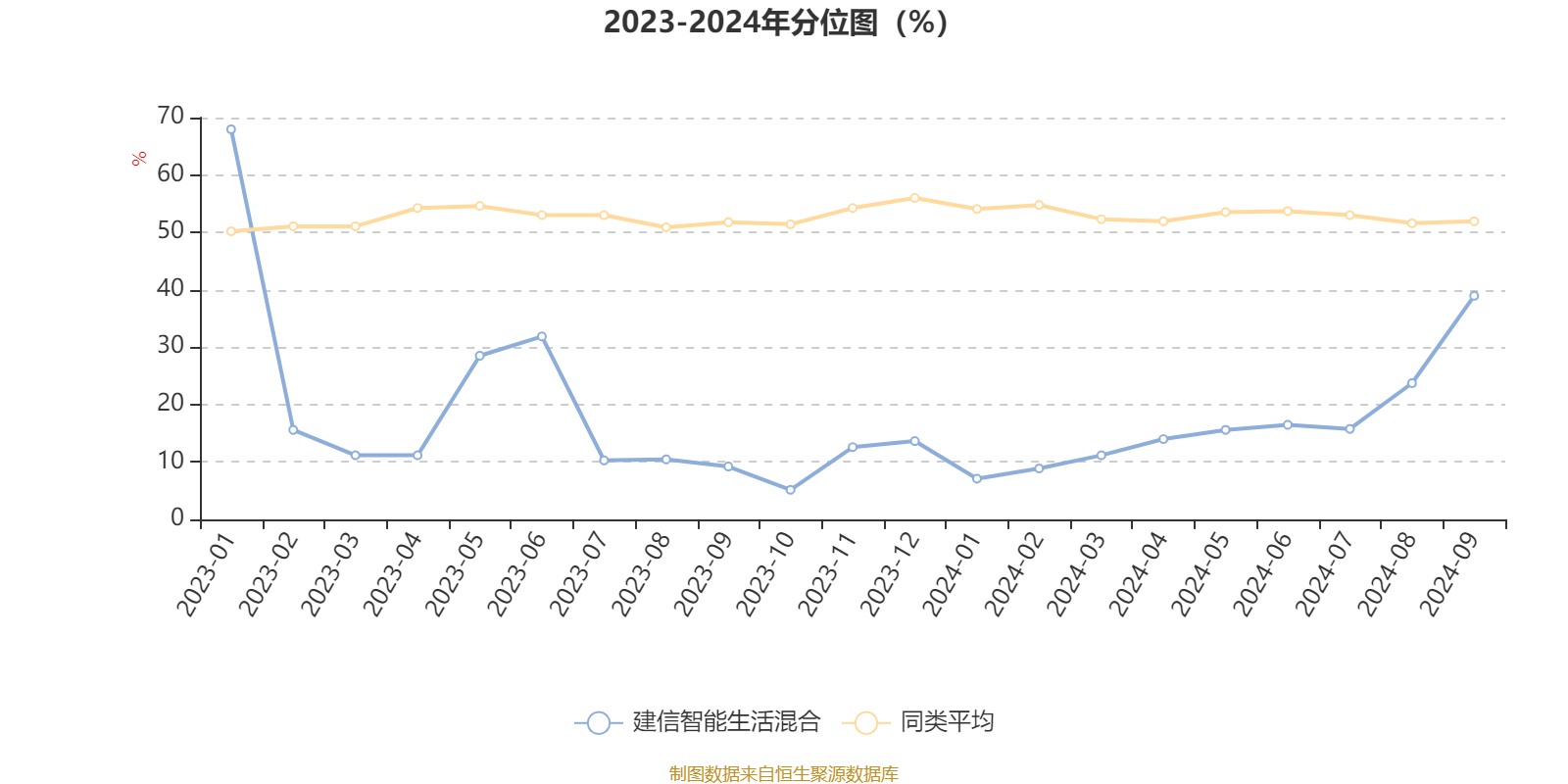 通过所选区间该基金净值增长率分位图,可以观察该基金与同类基金业绩比较情况。图为坐标原点到区间内某时点的净值增长率在同类基金中的分位数。