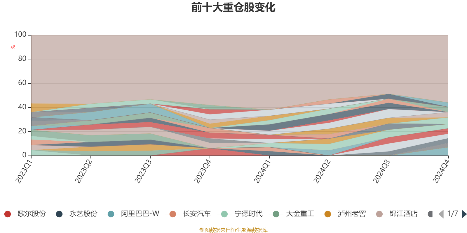 截至2024年四季度末,基金十大重仓股分别是阿里巴巴-W、永辉超市、传音控股、王府井、新宝股份、泡泡玛特、中升控股、腾讯控股、经纬恒润、中国南方航空股份。