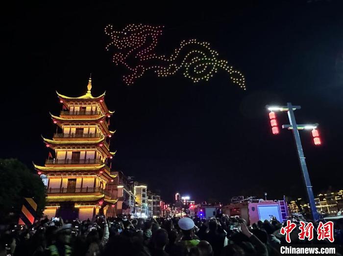 2024年11月10日,甘肃陇南市文县,无人机进行表演。(资料图)高展摄