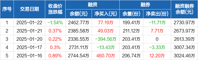 家电ETF:融资净买入77.19万元,融资余额2462.77万元(01-22)