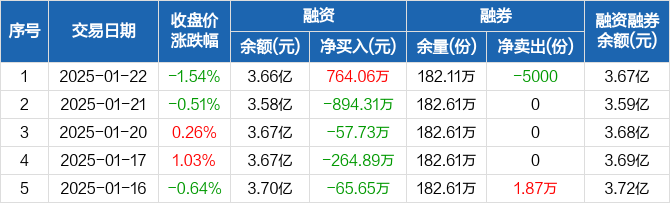消费ETF:融资净买入764.06万元,融资余额3.66亿元(01-22)
