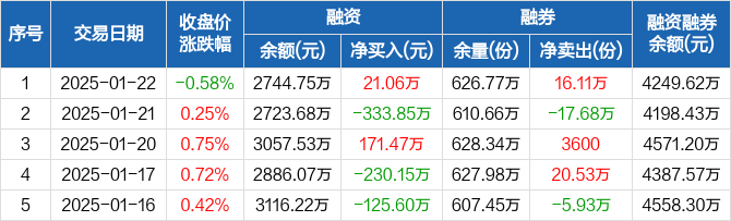 中证1000ETF易方达:融资净买入21.06万元,融资余额2744.75万元(01-22)