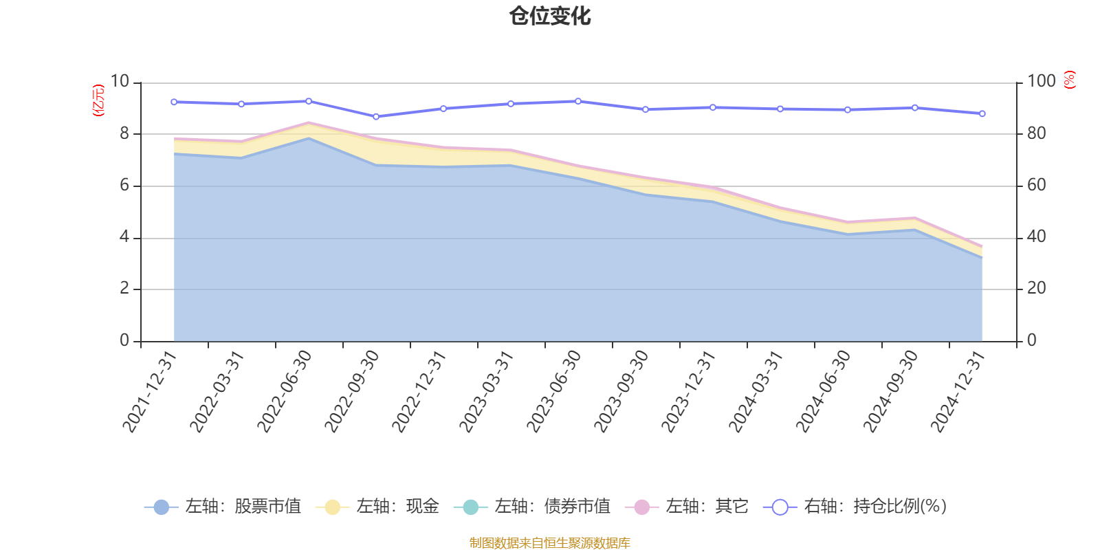 据定期报告数据统计,近三年平均股票仓位为90.27%,同类平均为88.09%。2022年上半年末基金达到92.79%的最高仓位,2022年三季度末最低,为86.81%。
