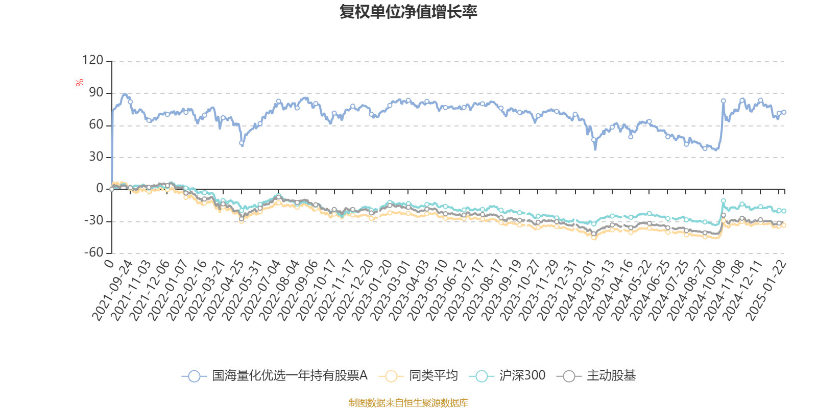 截至1月22日,国海量化优选一年持有股票A近三个月复权单位净值增长率为0.44%,位于同类可比基金30/100;近半年复权单位净值增长率为16.31%,位于同类可比基金32/100;近一年复权单位净值增长率为14.12%,位于同类可比基金51/97;近三年复权单位净值增长率为1.73%,位于同类可比基金4/76。