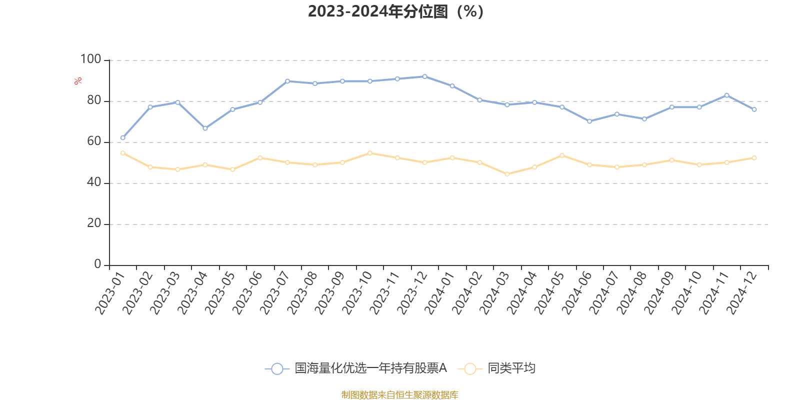 通过所选区间该基金净值增长率分位图,可以观察该基金与同类基金业绩比较情况。图为坐标原点到区间内某时点的净值增长率在同类基金中的分位数。