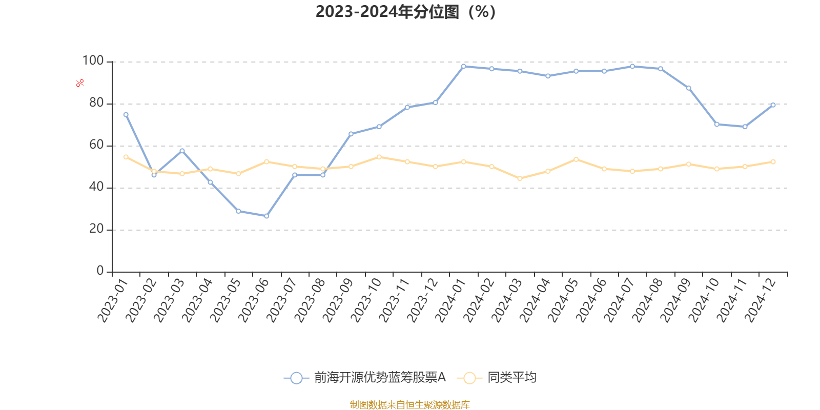 通过所选区间该基金净值增长率分位图,可以观察该基金与同类基金业绩比较情况。图为坐标原点到区间内某时点的净值增长率在同类基金中的分位数。