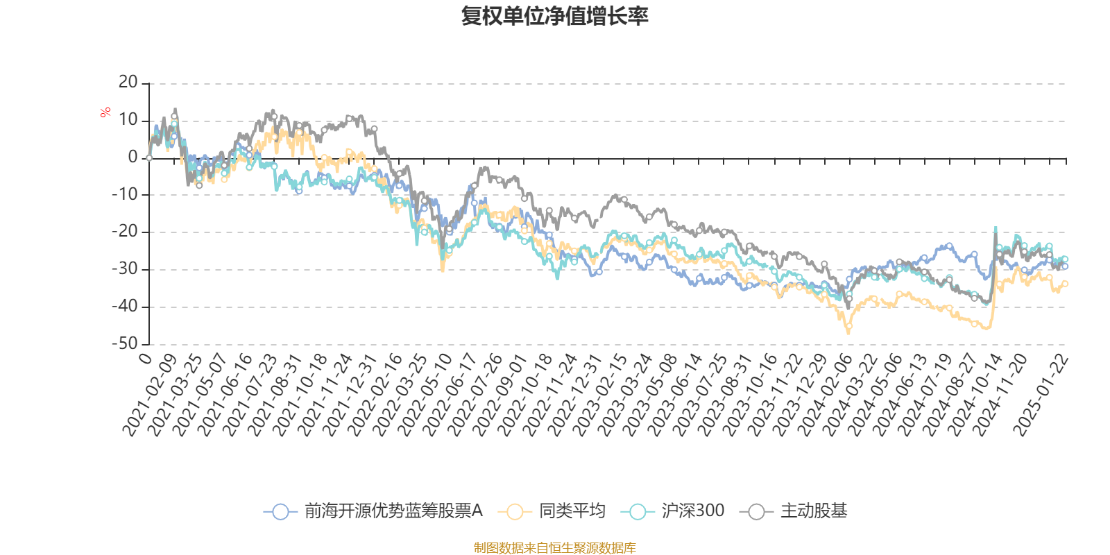 截至1月22日,前海开源优势蓝筹股票A近三个月复权单位净值增长率为-2.03%,位于同类可比基金51/100;近半年复权单位净值增长率为-5.99%,位于同类可比基金99/100;近一年复权单位净值增长率为13.37%,位于同类可比基金58/97;近三年复权单位净值增长率为-25.21%,位于同类可比基金45/76。