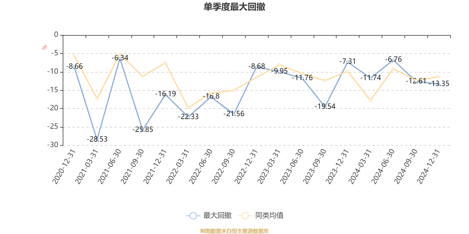 截至1月21日,基金近三年最大回撤为39.4%,同类可比基金排名44/75。单季度最大回撤出现在2021年一季度,为28.53%。