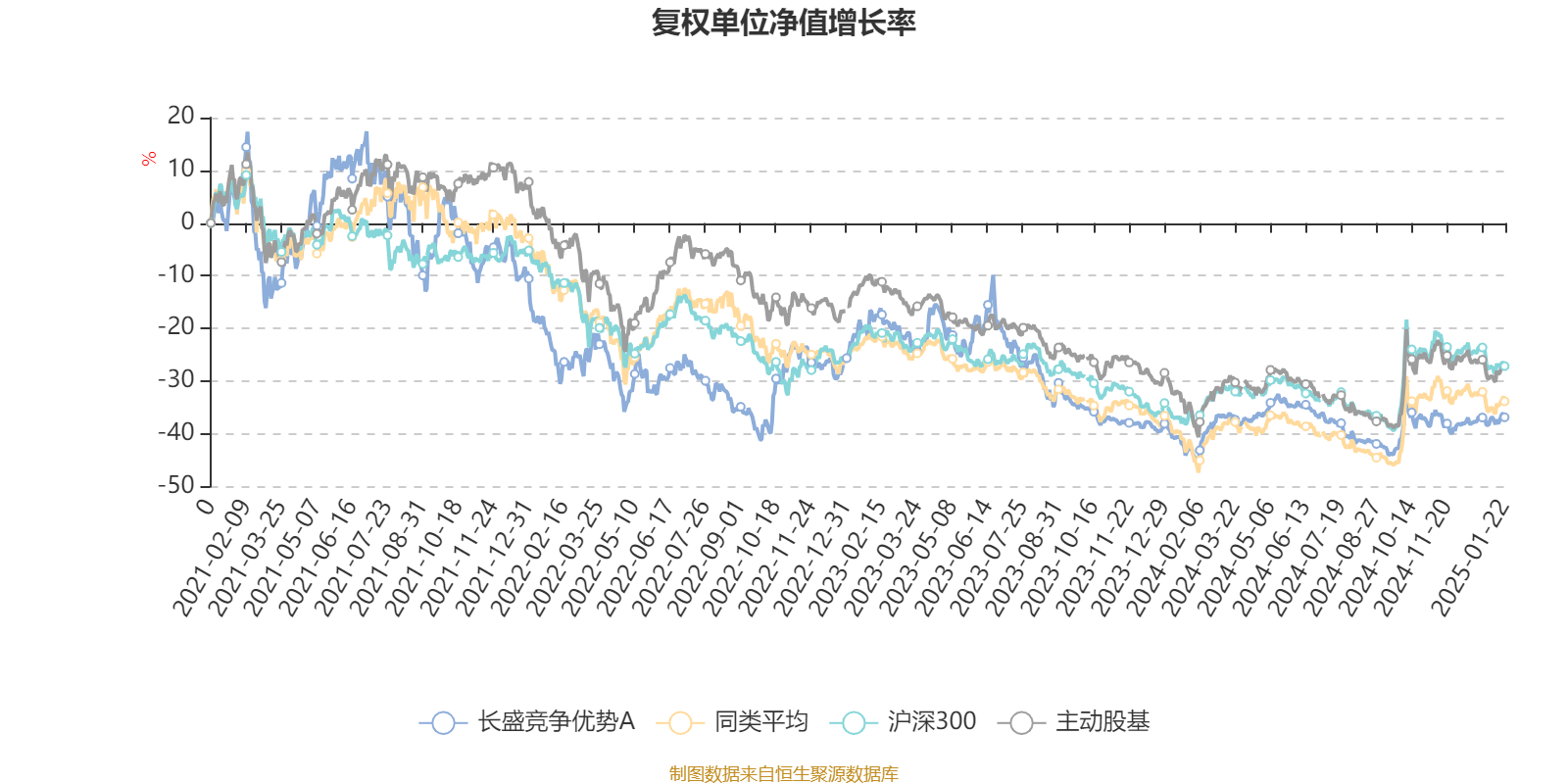 截至1月22日,长盛竞争优势A近三个月复权单位净值增长率为-0.42%,位于同类可比基金36/100;近半年复权单位净值增长率为2.54%,位于同类可比基金80/100;近一年复权单位净值增长率为12.93%,位于同类可比基金61/97;近三年复权单位净值增长率为-19.84%,位于同类可比基金30/76。