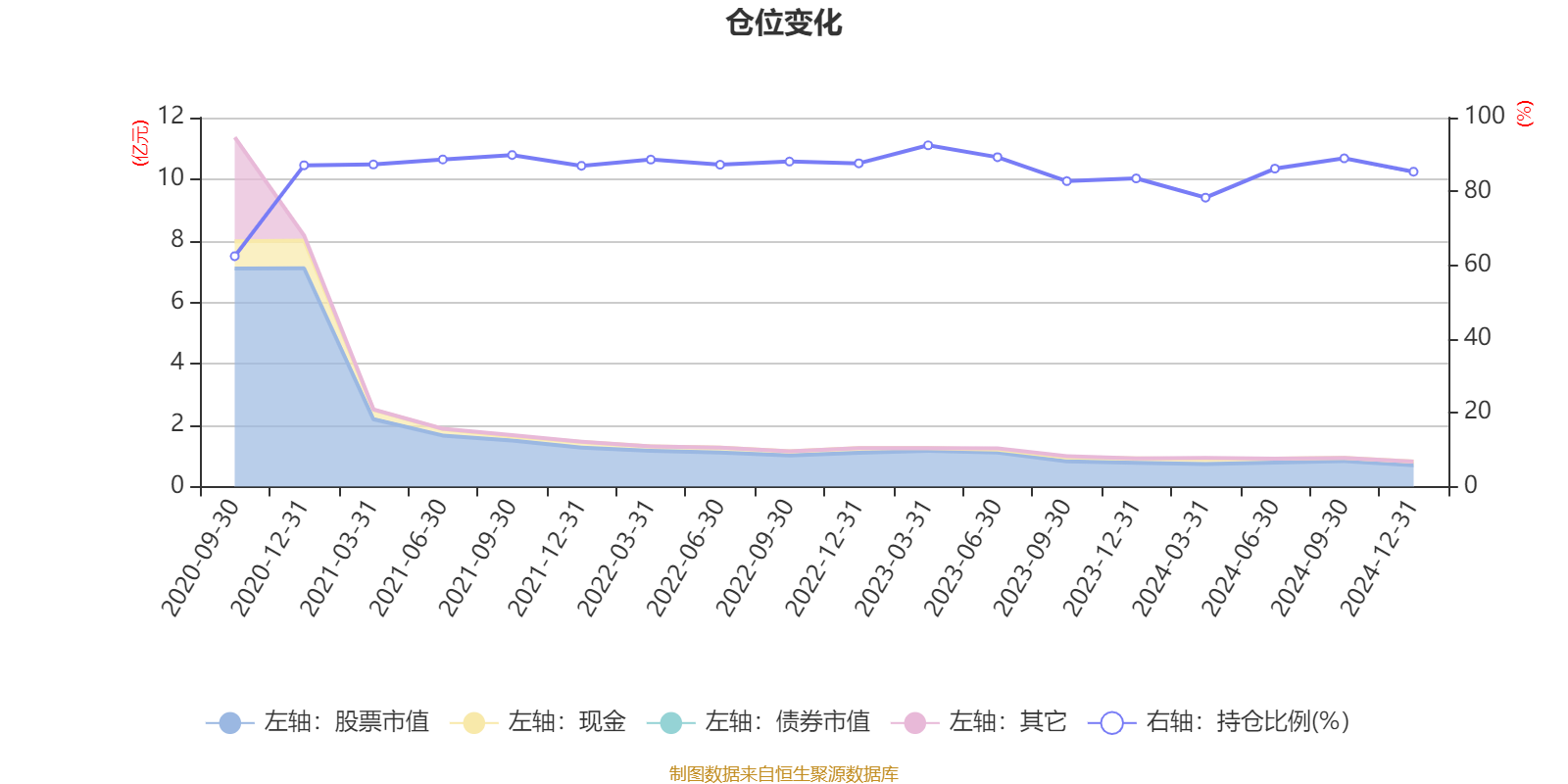 据定期报告数据统计,近三年平均股票仓位为86.53%,同类平均为88.09%。2023年一季度末基金达到92.49%的最高仓位,2020年三季度末最低,为62.44%。