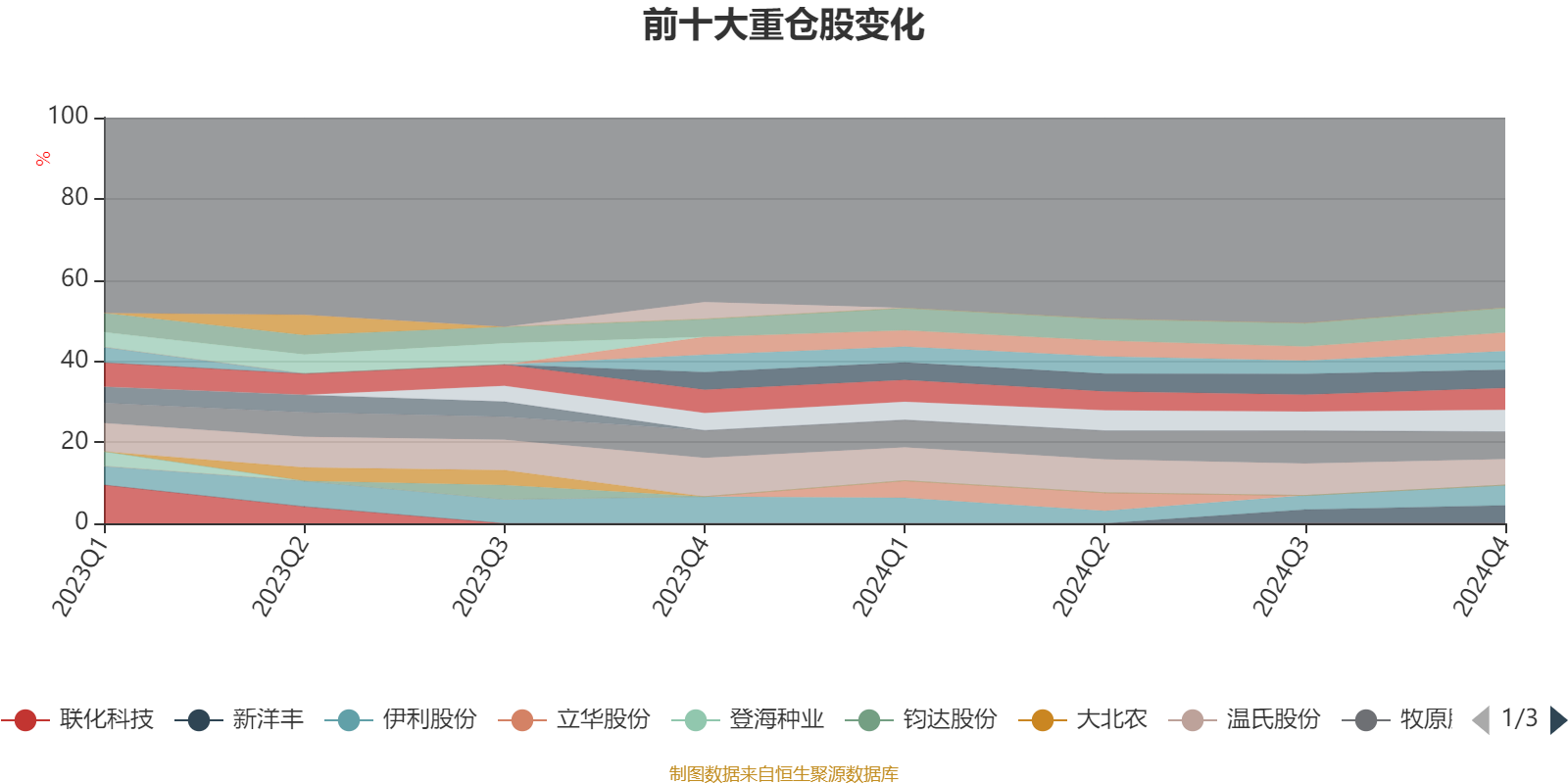 截至2024年四季度末,基金十大重仓股分别是牧原股份、温氏股份、海天味业、海大集团、盐湖股份、伊利股份、中炬高新、双汇发展、安井食品、新洋丰。