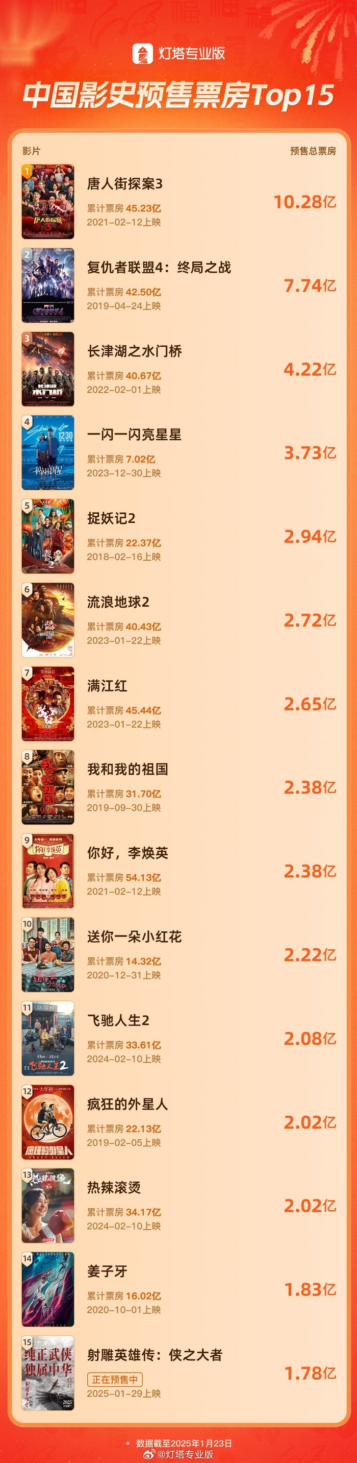 《射雕英雄传:侠之大者》进入中国影史预售票房榜前15名