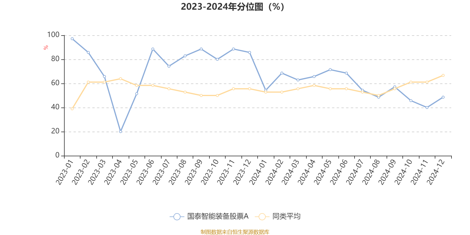 通过所选区间该基金净值增长率分位图,可以观察该基金与同类基金业绩比较情况。图为坐标原点到区间内某时点的净值增长率在同类基金中的分位数。