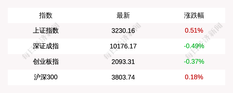 每经AI快讯:北京时间1月23日15:00,上证指数收盘上涨16.54点,涨幅为0.51%,报收3230.16点,成交额5398.01亿元;深证成指收盘下跌49.7点,跌幅为0.49%,报收10176.17点,成交额8154.84亿元;创业板指收盘下跌7.72点,跌幅为0.37%,报收2093.31点,成交额3878.34亿元;沪深300收盘上涨6.72点,涨幅为0.18%,报收3803.74点,成交额3451.98亿元。