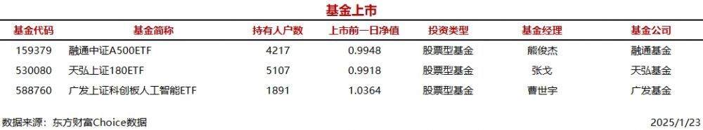 南方财经1月23日电,据东方财富Choice数据统计,今日共有3只基金上市,为股票型基金。