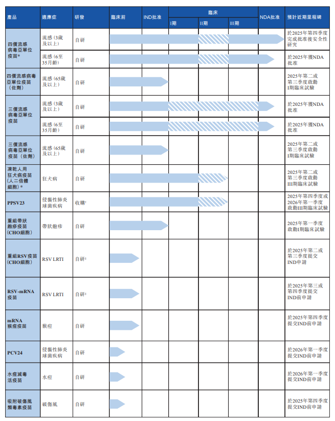 除上述两种核心产品外,中慧生物的产品管线还包括其他11种在研疫苗,涵盖多种有疫苗接种需求的疾病领域。