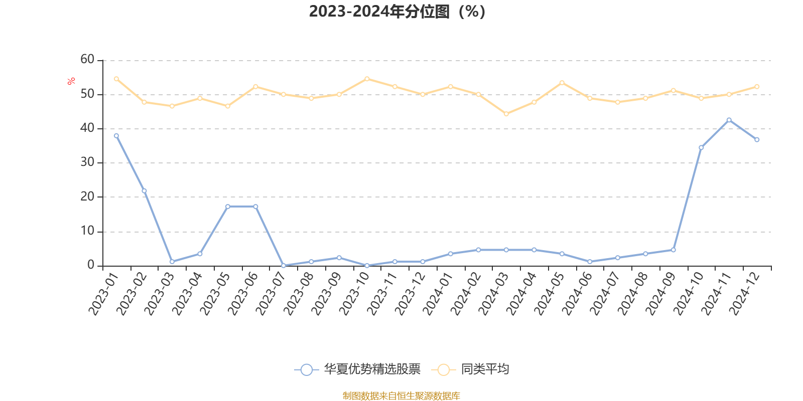 通过所选区间该基金净值增长率分位图,可以观察该基金与同类基金业绩比较情况。图为坐标原点到区间内某时点的净值增长率在同类基金中的分位数。