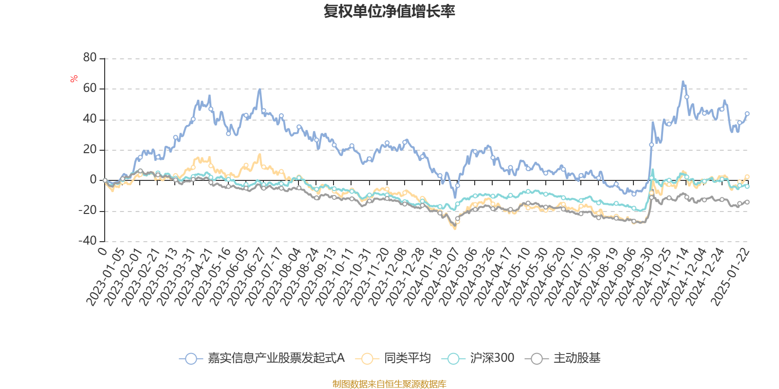 截至1月22日,嘉实信息产业股票发起式A近三个月复权单位净值增长率为4.64%,位于同类可比基金20/49;近半年复权单位净值增长率为34.64%,位于同类可比基金4/49;近一年复权单位净值增长率为47.31%,位于同类可比基金11/46。