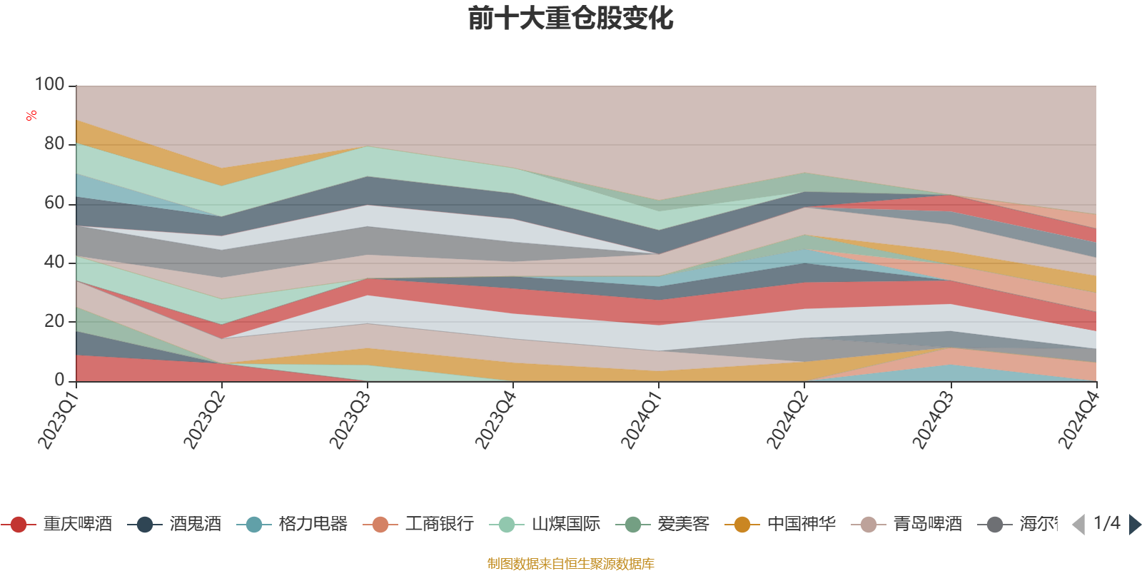 该基金持股集中度较高。截至2024年四季度末,基金十大重仓股分别是中国移动、招商银行、工商银行、美的集团、中国海油、福耀玻璃、中国银行、宇通客车、中国太保、海尔智家。