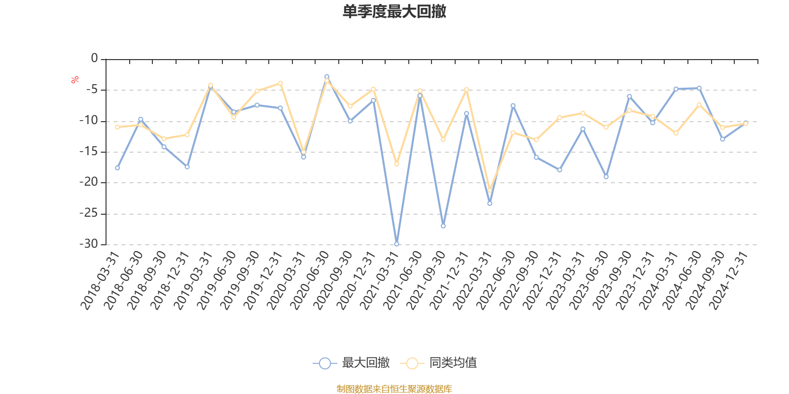 截至1月21日,基金近三年最大回撤为36.43%,同类可比基金排名11/16。单季度最大回撤出现在2021年一季度,为29.91%。