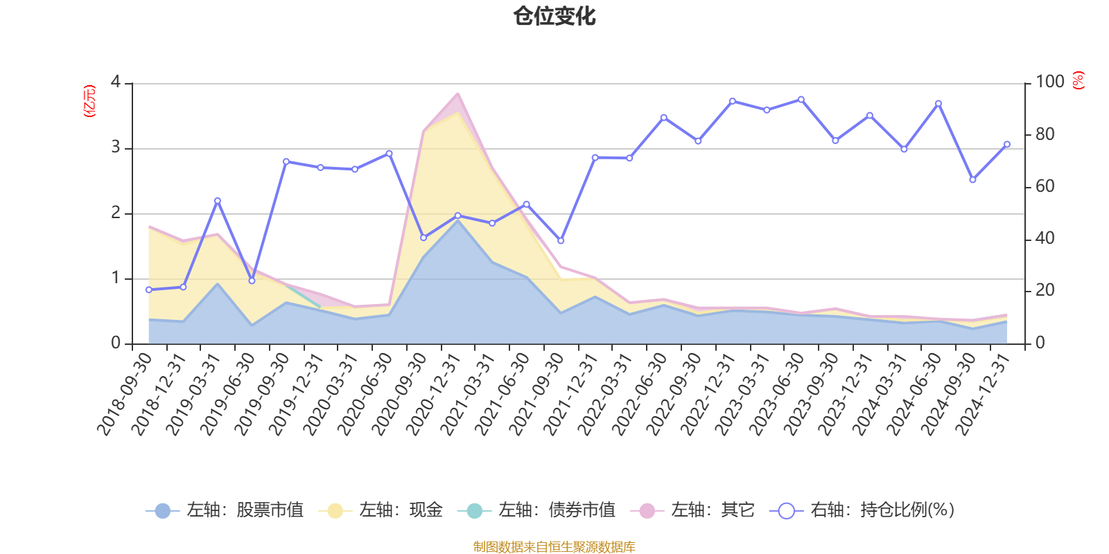 据定期报告数据统计,近三年平均股票仓位为82.02%,同类平均为79.89%。2023年上半年末基金达到93.73%的最高仓位,2018年三季度末最低,为20.74%。