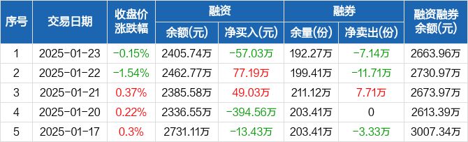 家电ETF:融资净偿还57.03万元,融资余额2405.74万元(01-23)